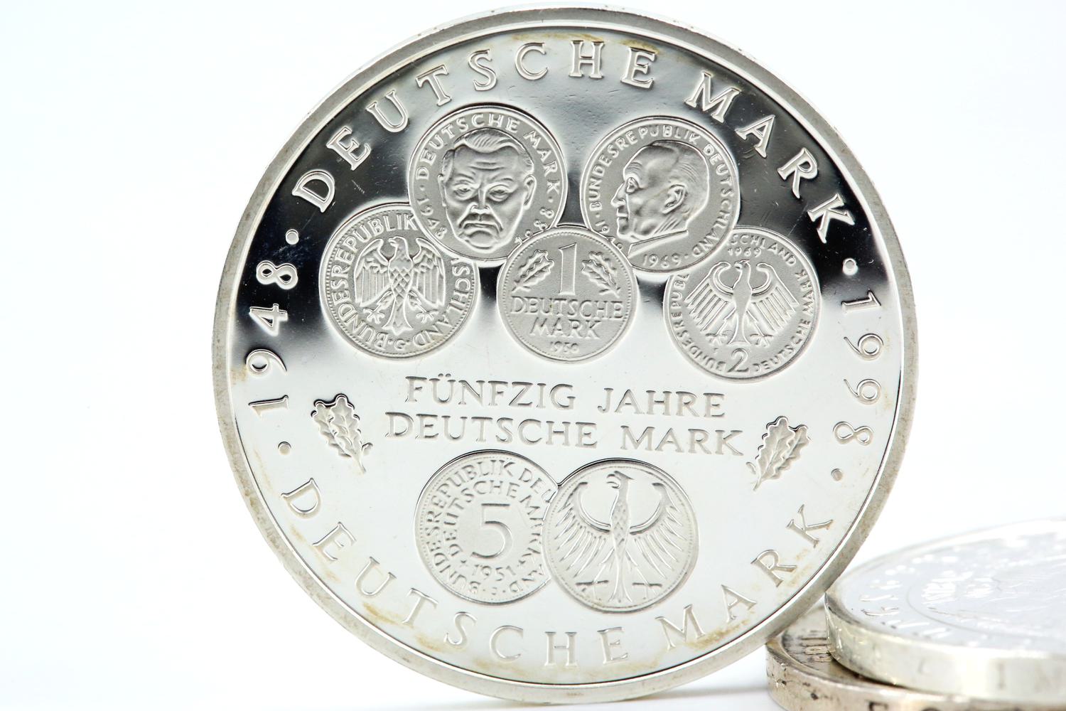 Zur Euroeinführung haben die Meisten Ihre D-Mark Bestände umgetauscht. Hiervon ausgenommen sind Gedenkmünzen, wie die 10 DM Silbermünzen, denn diese wurden aufgrund ihres Edelmetallgehalts und möglichen Sammlerwerts vermehrt aufbewahrt. Je nach Silberpreis hat sich dies gelohnt, da der Materialwert den Nennwert teilweise übersteigt. Wenn Sie Ihre 10 DM Münzen verkaufen möchten oder den aktuellen 10 DM Münzen Wert erfahren wollen, sind Sie hier genau richtig!